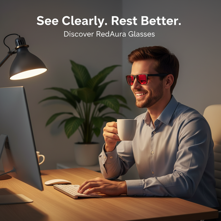 RedAura Glasses filter 100% of blue and UV light, so your eyes feel fresh and focused—even after marathon screen sessions. Slip them on, protect your sleep, and say goodbye to digital eye strain.
